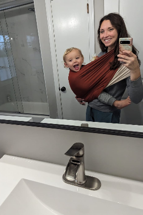 Ano, jeho nastavitelný střih se snadno přizpůsobí všem velikostem nosiče.