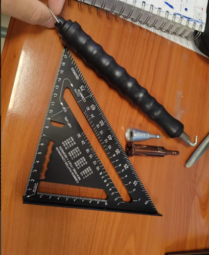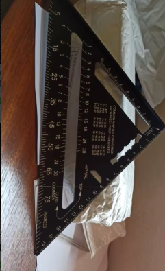 Zahrnuje pravítko, úhelník, protractor, vrtací vodič, vše laserem vyryté pro dokonalou čitelnost.