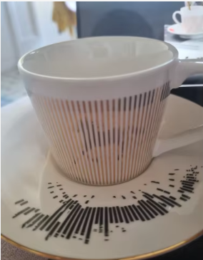 Está fabricada en porcelana fina con acabados dorados, ofreciendo un diseño lujoso y una excelente durabilidad en el día a día.